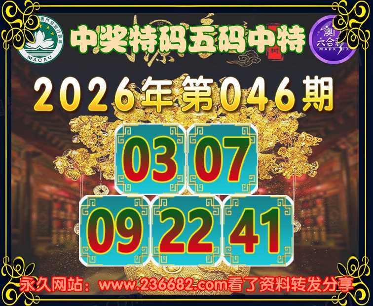 046期:《中奖特码》 🏃‍♀️五码中特🏃‍♀️【03.07.09.22.41】开:03