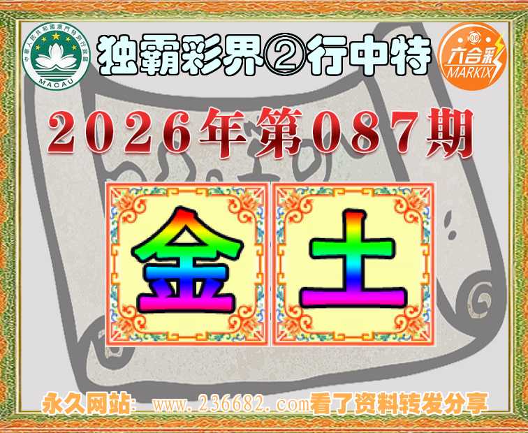 087期:【独霸彩界】 🧶②行中特🧶【.土】开:金26