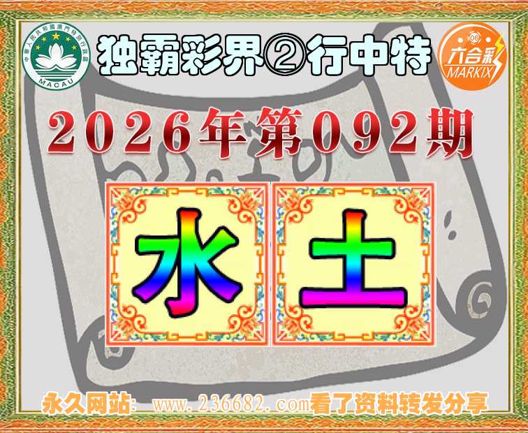 092期:【独霸彩界】 🧶②行中特🧶【水.】开:土06