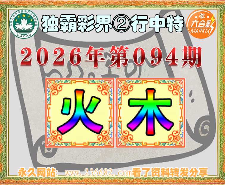 094期:【独霸彩界】 🧶②行中特🧶【火.】开:木17